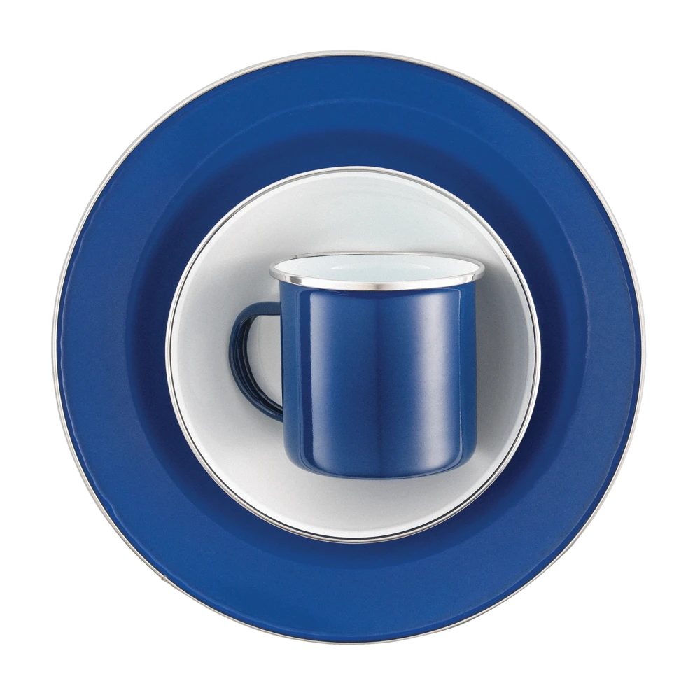 - Woods™ Family Enamel Camping Tableware Set features stainless steel rims that increase strength and durability