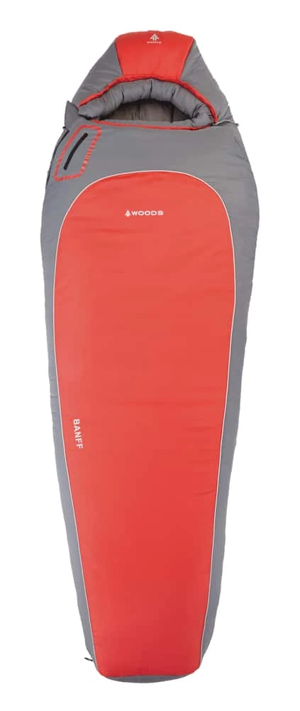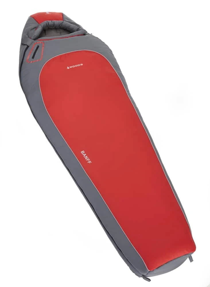 - Woods™ Expedition Banff -12°C Mummy Sleeping Bag features a lightweight 260T Rip-stop Polyester shell and luxurious microfibre linings