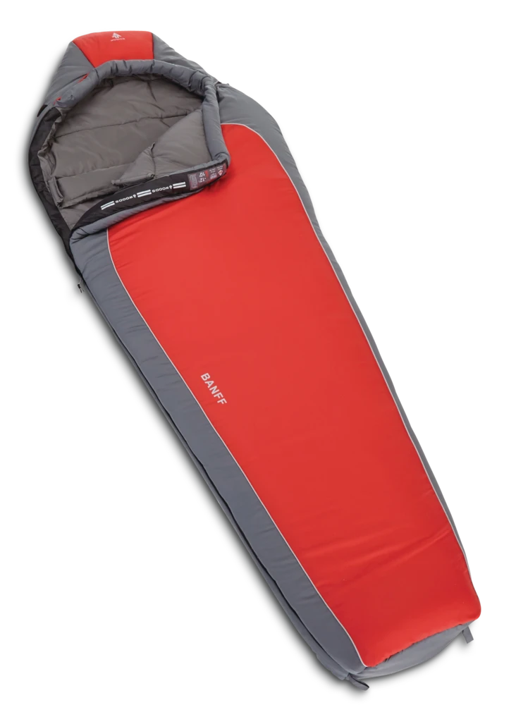 A cold-weather mummy shaped sleeping bag, the BANFF provides both performance and compressibility. Its high-performing synthetic insulation and microfibre lining deliver warmth and added comfort next to skin, while remaining lightweight. A thermo-layer collar and zipper draft tube keeps heat in and cold out to keep you warm all night long.