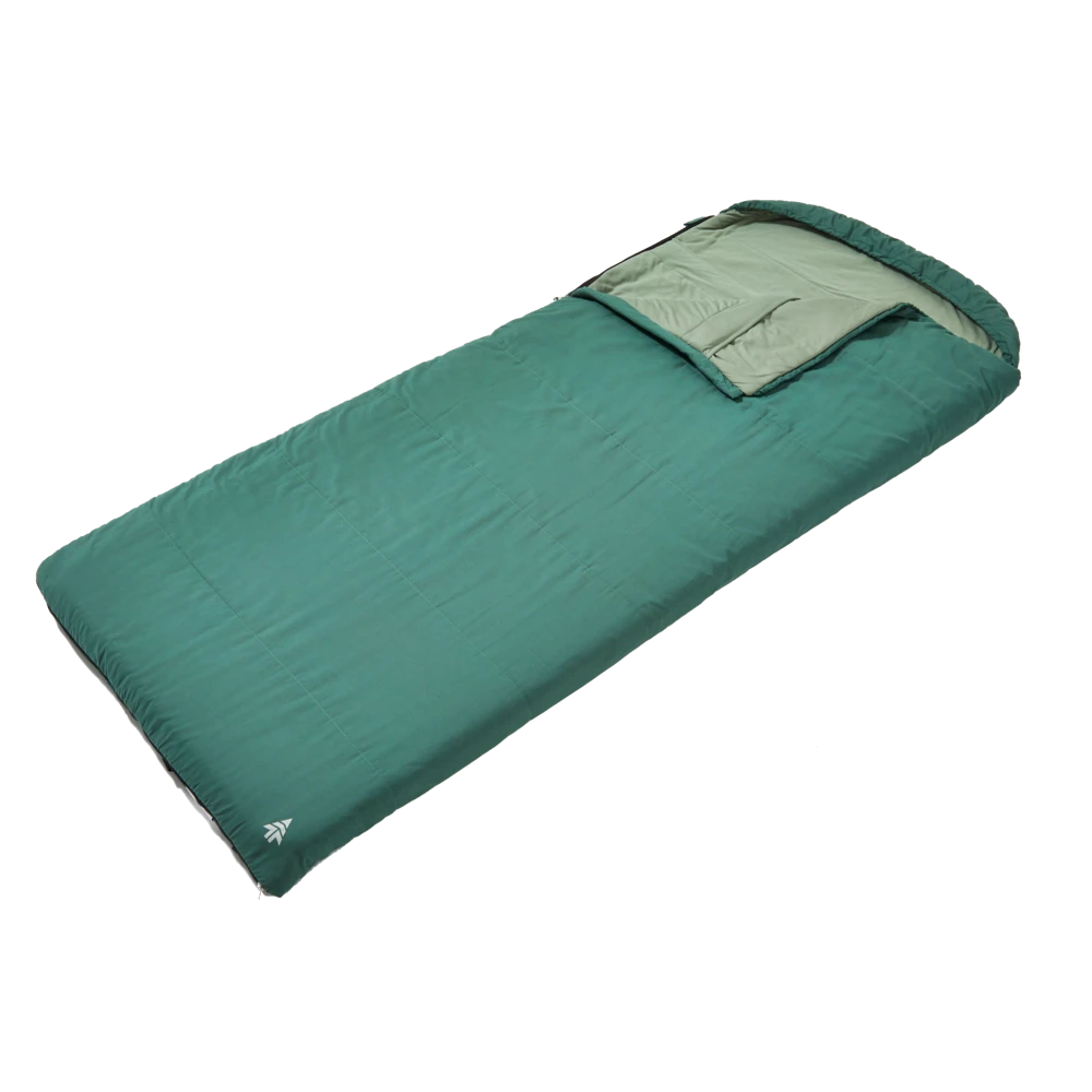 To keep your whole body warm, seal in the heat with the Fernie hooded sleeping bag. Its large rectangular shape is roomy so you can find your ideal sleeping position and synthetic insulation combined with a hooded design retains body heat. Ideal for summer camping spent under the stars.