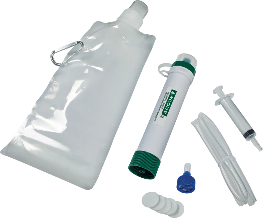 - Woods Waterstraw filters out 99.99% of colibacillus and legionella