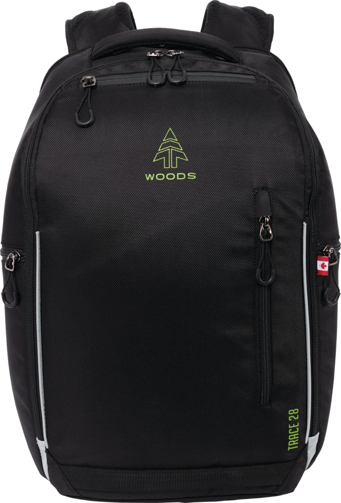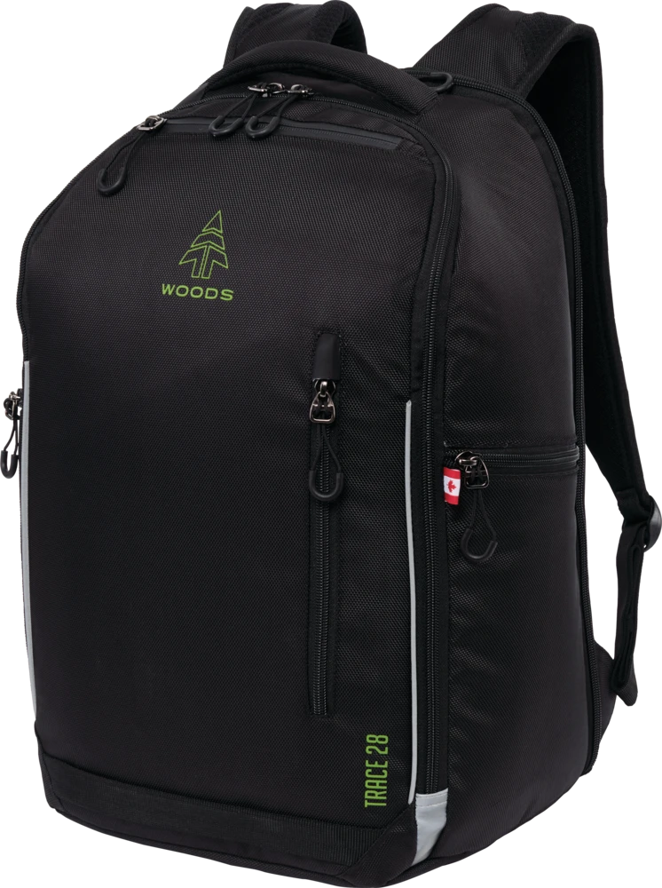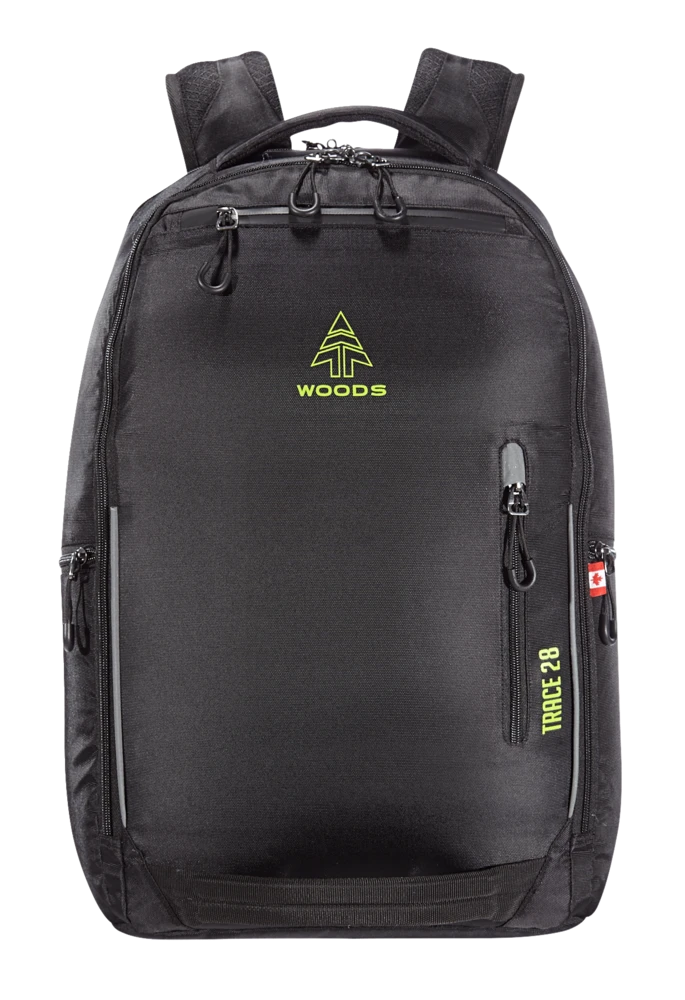 A go-to travel companion for far off destinations or commutes closer to home, the Woods™ Trace Daypack is everything and more. Three large main storage compartments open wide for easy access to essentials and a padded laptop pocket fits a 17.5″ laptop. Multiple secure stash pockets and air-flow back panels make it a great pack for on the move situations in the city or the airport.